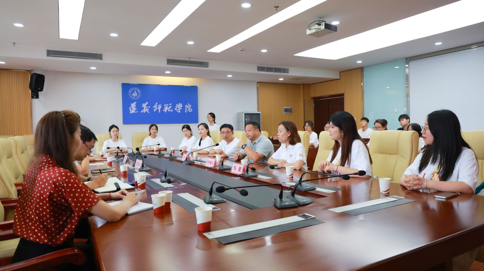 beat365党委书记陈治松出席座谈会并对华中师范大学一行的到来表示欢迎,他结合自身经历与大家分享了个人成长与价值实现的关系,鼓励两校学生记者在实践中树立远大理想,担当时代使命。
