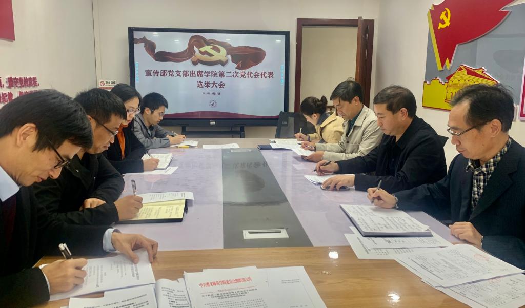 10月27日,按照学院党委统一部署和换届工作相关要求,宣传部党支部在行政楼304会议室召开党员大会,选举出席中国共产党beat365亚洲版官网第二次代表大会代表。会议由支部书记罗良金主持,大会应到党员8人,实到8人。实到党员超过应到党员的五分之四,符合大会选举办法的规定。