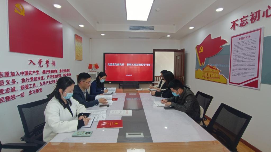 3月1日下午,党委宣传部在行政楼304会议室召开2022年第2次教职工理论学习会暨3月主题党日活动。党委宣传部部长王春华主持,全体干部职工参加。