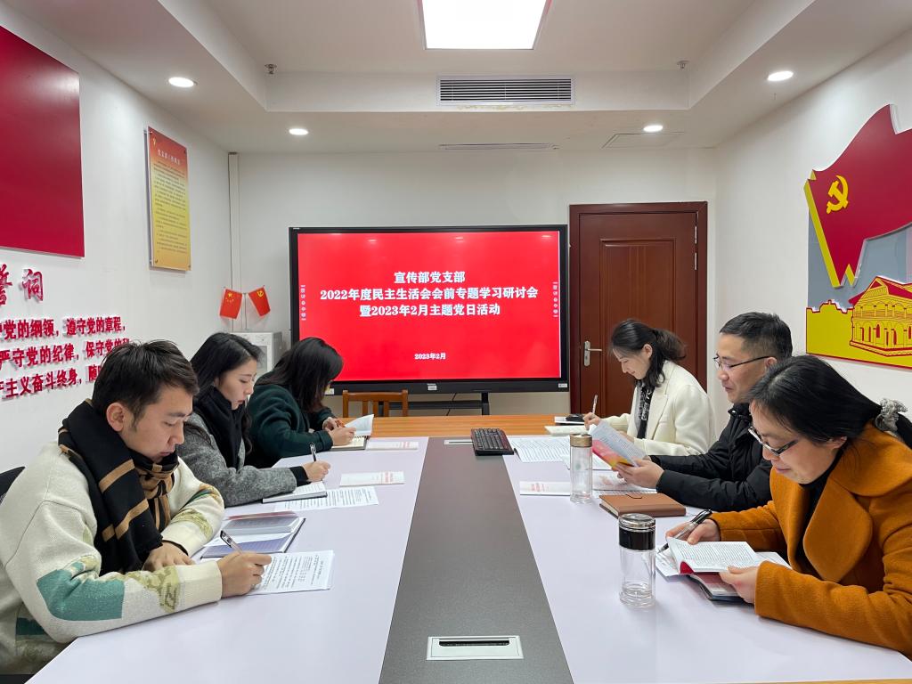 2月20日,宣传部党支部2022年度民主生活会会前专题学习研讨会暨2023年2月主题党日活动在行政楼304会议室举行。宣传部党支部书记王春华主持会议,处级党员干部出席会议,其他人员列席会议。