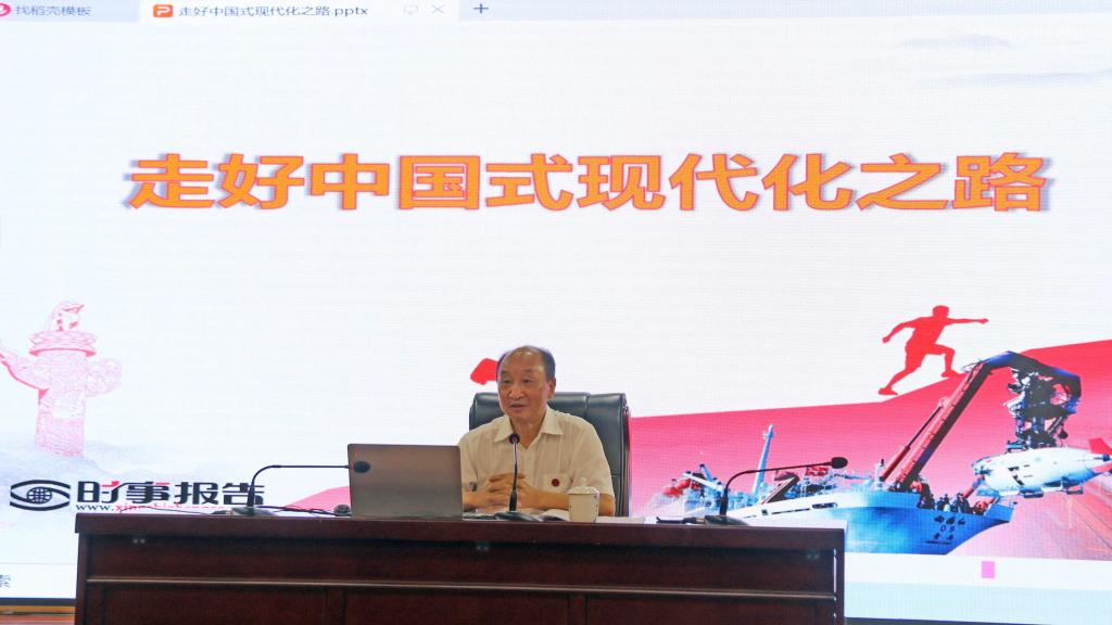 曾伯平提到,走好中国式现代化道路,要坚持中国共产党领导,坚持中国特色社会主义,实现高质量发展,发展全过程人民民主;更要实现全体人民共同富裕,促进人与自然和谐共生,推动构建人类命运共同体,创造人类文明新形态。