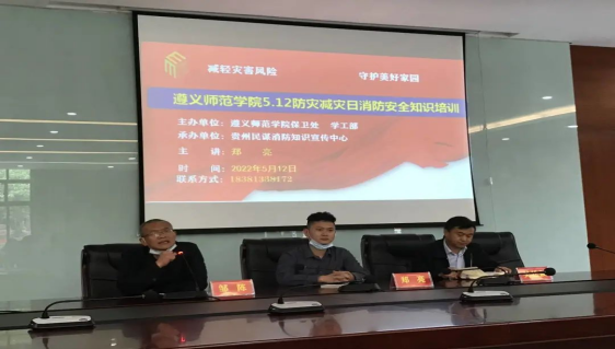 为构建安全校园,营造和谐的校园氛围,进一步提高学生消防安全意识,2022年5月12日下午,beat365亚洲版官网保卫处联合学生工作部组织了beat365亚洲版官网5·12防灾减灾日消防安全知识培训和消防演练活动。本次培训由贵州省全民安居消防知识宣传服务中心高级教官郑亮主讲。保卫处副处长邹陈、学工部副部长吴廷强、保卫处及学工部相关工作人员、学生寝室长参加了本次活动。