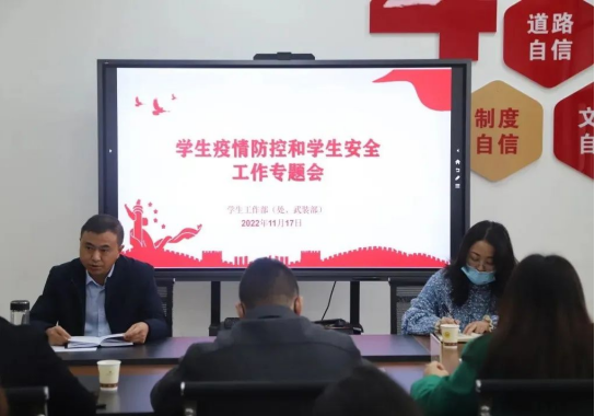 为做好全校学生疫情防控和安全工作,根据目前疫情防控形势,结合学校实际,学生工作部(处、武装部)于2022年11月17日上午在学生中心405会议室主持召开学生疫情防控和学生工作专题会议,各学院党委(党总支)副书记和学生科科长参加,学生工作部(处、武装部)副部长吴廷强主持。