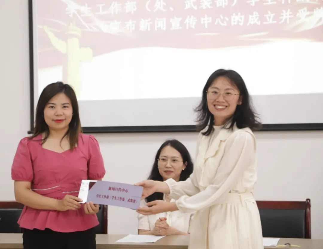 接着,指导老师冉海鑫就新闻宣传中心成立作情况汇报。汇报完毕后,学生事务管理科副科长何叶老师宣布beat365亚洲版官网学生工作部(处、武装部)新闻宣传中心正式成立并授牌。