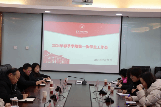 为全面抓好开学工作,以最好的精神面貌迎接新学期的到来,保证新学期开学学生工作稳定、有序、高效开展。2月27日下午,学校在行政楼321会议室召开了2024年春季学期第一次学生工作会。新蒲派出所大学城负责人、学生工作部相关人员、各二级学院党委(党总支)副书记参会,学生工作部部长段佳主持会议。