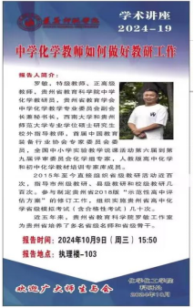 10月9日,化学化工学院特邀贵州省教育科学院罗敏教研员为师生开展专题讲座。