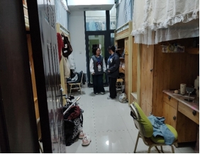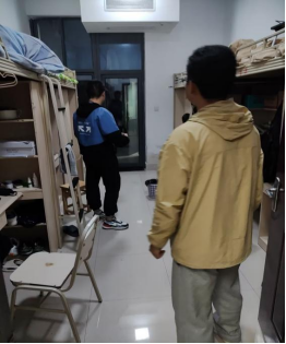 为推动平安社区建设,充分发挥学生“四自”作用,宿管委开展日常检查和夜间巡楼。对各公寓楼寝室卫生情况进行监督,查看是否有违规电器、私拉乱接电线等宿舍安全隐患。
