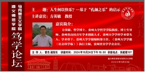 10月24日下午,马克思主义学院举办笃学论坛讲座。学院邀请了贵州大学哲学学院教授、哲学博士、博士生导师方英敏作为主讲嘉宾,讲座由学院副院长曾杰主持,大一年级、大二年级和大四年级学生参加讲座。