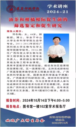 10月9日、14日,科研处、资源与环境学院、化学化工学院在图书馆学术报告厅先后举办《中学化学教师如何做好科研工作》《重金属矿业废弃地的生态恢复》《油茶和柑橘根际促生菌的筛选鉴定和促生研究》学术讲座。
