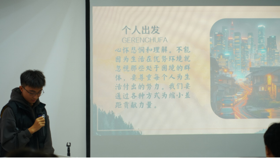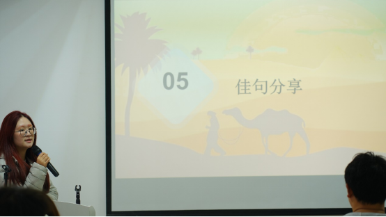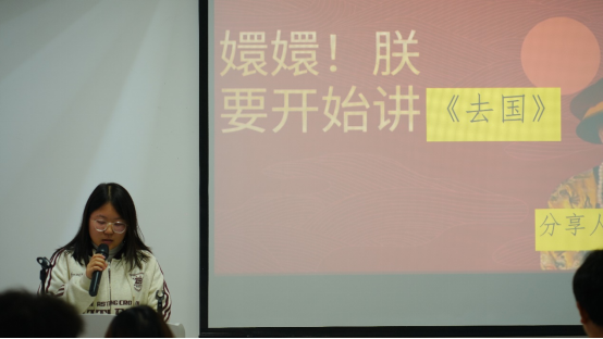 分享会上,外国语学院23级英语本科专业王馨婉同学分享了陈平的《撒哈拉的故事》;人文与传媒学院24级汉语言文学专业梁龙莲同学分享了鲁迅的《狂人日记》;资源与环境学院24级地理科学专业刘昊东同学分享了余华的《我们生活在巨大的差距里》;资源与环境学院24级地理科学专业张贵翔同学分享了张嘉佳的《云边有个小卖部》;信息工程学院24级计算机科学与技术专业兰健豪同学分享了孔祥秋的《李清照词传》;人文与传媒学院24级汉语言文学专业刘小丽同学分享了冰心的《去国》。