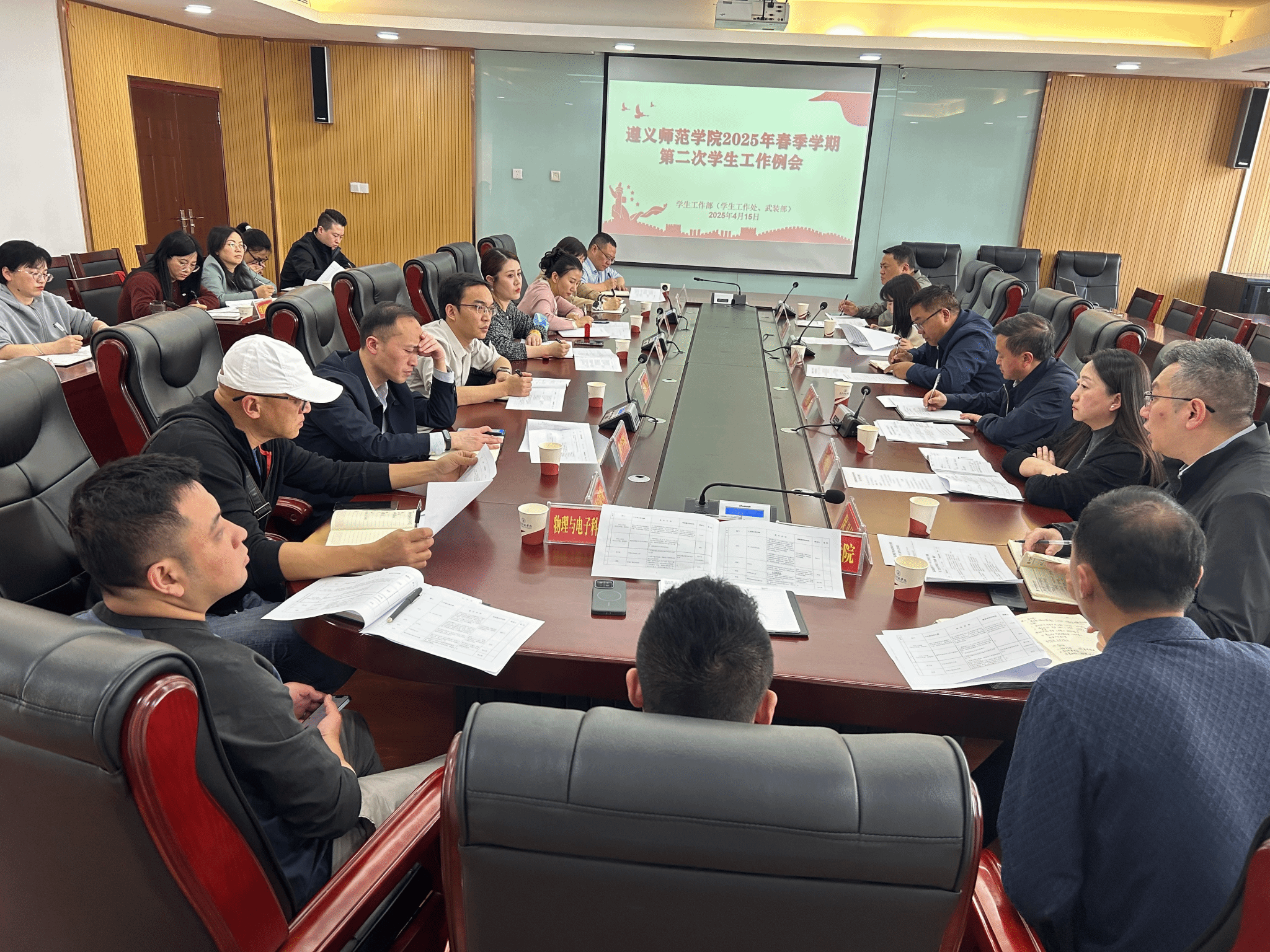 2025年4月15日下午2:30,beat365亚洲版官网召开2025年春季学期第二次学生工作例会。会议由学生工作部部长吴廷强主持,学校党委委员、副校长吴波出席会议,团委、招就处、保卫处、学生资助与管理中心主要负责人,各学院党委(党总支)副书记、学生科科长(负责人)参加会议。