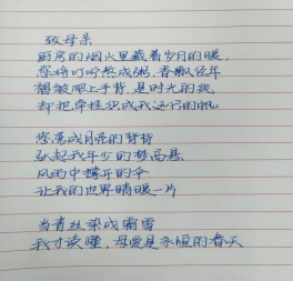“纸短情长—写给妈妈的情诗”活动同样反响热烈,成为本次母亲节活动的一大亮点。同学们紧扣“母亲”这一主题,用原创诗歌倾诉心声,表达对母亲的深情。一首首诗歌或质朴真挚、或优美动人,字里行间凝聚着感恩与思念,展现了母爱的无私与伟大。参与者们纷纷表示,通过此次诗歌创作,他们更加深刻地体会到了母爱的伟大,也为自己找到了一种独特而深刻的情感表达方式。