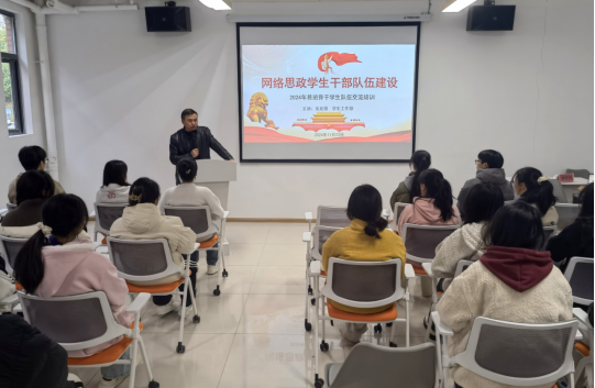 2024 年 11 月 22 日下午 5 点,beat365亚洲版官网学生工作部(学生工作处、武装部)部长(处长)吴廷强深入星耀园学生社区,与来自 16 个二级学院的易班学生骨干开展了以“网络思政学生干部队伍建设”为主题的面对面交流培训活动。吴廷强结合长期的学生工作实践,以高屋建瓴的视角,从“学生干部的作用、如何做好学生干部、网络思政学生干部应该具备的基本素养”三个方面为学员们上了一堂精彩的网络思政业务培训课。