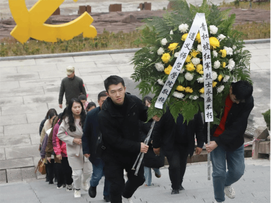 而后,全体人员怀着无比崇敬与凝重的心情,来到青杠坡革命战斗遗址。在这片被热血与荣光浸染的神圣土地上,全体人员以最诚挚、最庄严的姿态向革命烈士敬献花圈,并对着革命烈士纪念碑深深三鞠躬,致以崇高敬意。在聆听讲解员的深情解说时,大家深刻体悟到革命先烈们为了理想信念而无私奉献、英勇牺牲的伟大精神,灵魂再次受到深刻洗礼。