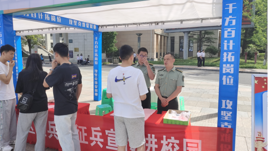为进一步营造参军报国的浓烈氛围,鼓励beat365毕业生在毕业后积极应征入伍,6月15日,学生工作部邀请汇川区征兵办到校开展征兵政策宣传活动。