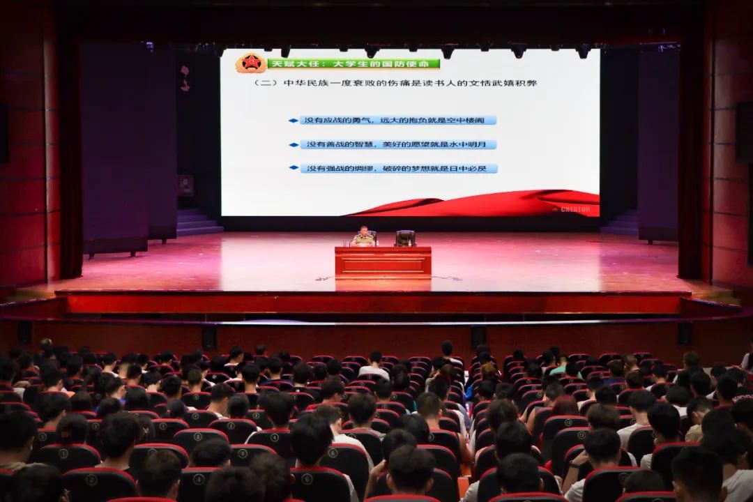 游勇上校从“天赋大任:大学生的国防使命”,“坚韧风骨:大学生的国防意识”,“巅峰意识:大学生的国防担当”等三个方面向同学们介绍了我国当前的国防形势和军事战略情况,强调了国防建设的重要性,详细解读了当前最新的征兵政策,以此鼓励同学们抓住机遇,勇于担当,积极应征入伍,为早日实现中华民族伟大复兴的中国梦贡献自己的青春力量。