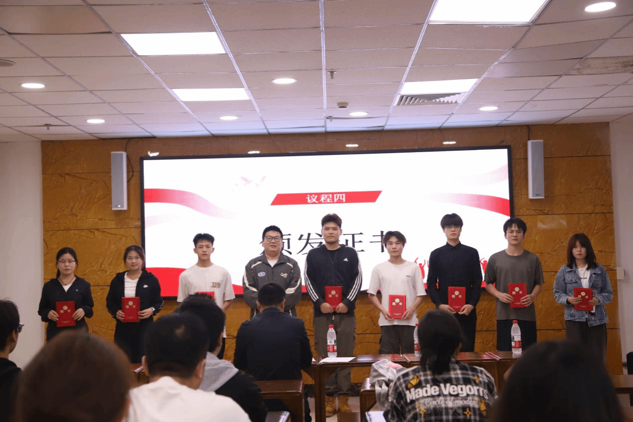 大会在庄严的国歌声中拉开帷幕。上一届会长周维兴对协会过去一年的工作进行了全面总结,回顾了在国防教育、军事训练、爱国主义教育活动等方面取得的成果。在过去的一年里,青春军旅协会组织了多次军事训练、国防教育讲座以及户外拓展活动,丰富了同学们的课余生活,增强了大家的国防意识和团队协作能力。随后,张家臣宣读了2025届协会新任学生干部名单,黄晔为新任学生干部颁发聘书。新任会长黄晓凤在发言中表示,将带领协会秉承军旅精神、强化责任担当,推动国防教育活动深入开展,继续发扬军旅精神、增强团队凝聚力,推动协会工作再上新台阶,为校园文化建设做出更大的贡献。