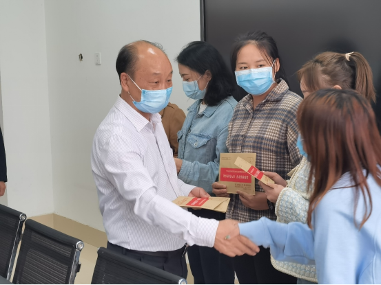 曾伯平指出,学工部要加强在疫情常态化下对全校学生的管理,严格落实疫情防控相关要求,并叮嘱大家在做好疫情防控工作的同时,加强自身安全防护,科学合理安排值班轮守,注意劳逸结合。亲切的话语和真诚的关怀让坚守在疫情防控一线的教职工倍感温暖和安心,并向工作人员送出慰问金。