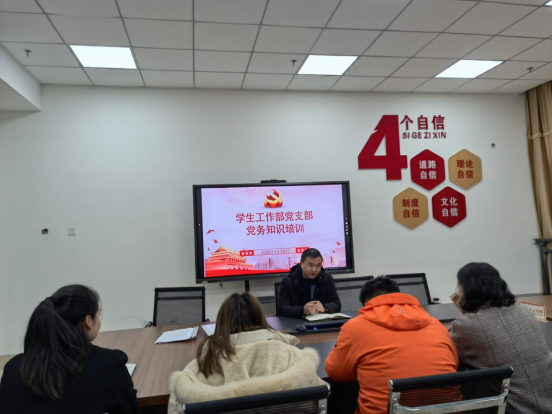 为切实提升学生工作部党支部党务工作者业务水平和履职能力,12月5日,学生工作部党支部组织开展党务知识培训。本次培训由学生工作部副部长吴廷强主讲,学生工作部党支部全体党员参加。