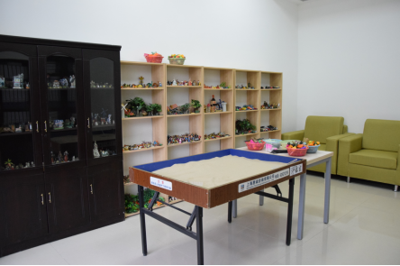 心理健康与咨询中心沙盘游戏室按照国际标准进行配置,拥有人物、动物、植物等十几个类别的沙具,可供多人同时进行集体沙盘游戏治疗。运用沙盘游戏疗法进行辅导,给予来访者更多非言语的、象征层面的支持,更易深入来访者的无意识,洞察来访者的心理轨迹,使来访者的内在情绪、深层次人格得以释放和表现。