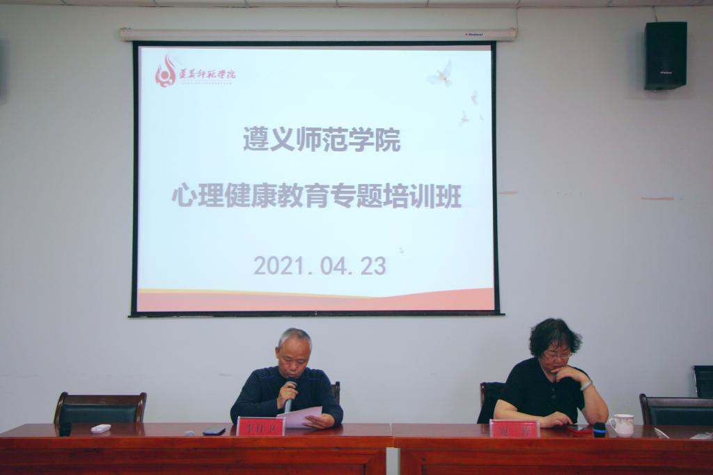 为加强大学生心理健康教育工作,提高辅导员(班主任)自身素质,beat365亚洲版官网于2021年4月23日下午在学生活动中心201培训室开展了第一期辅导员(班主任)心理健康专题培训。此次培训由beat365心理健康与咨询中心李仕卫老师主持,贵州师范学院宛蓉教授担任主讲,beat365学生科科长、专职辅导员、各二级学院班主任代表共60余人参加了此次培训。