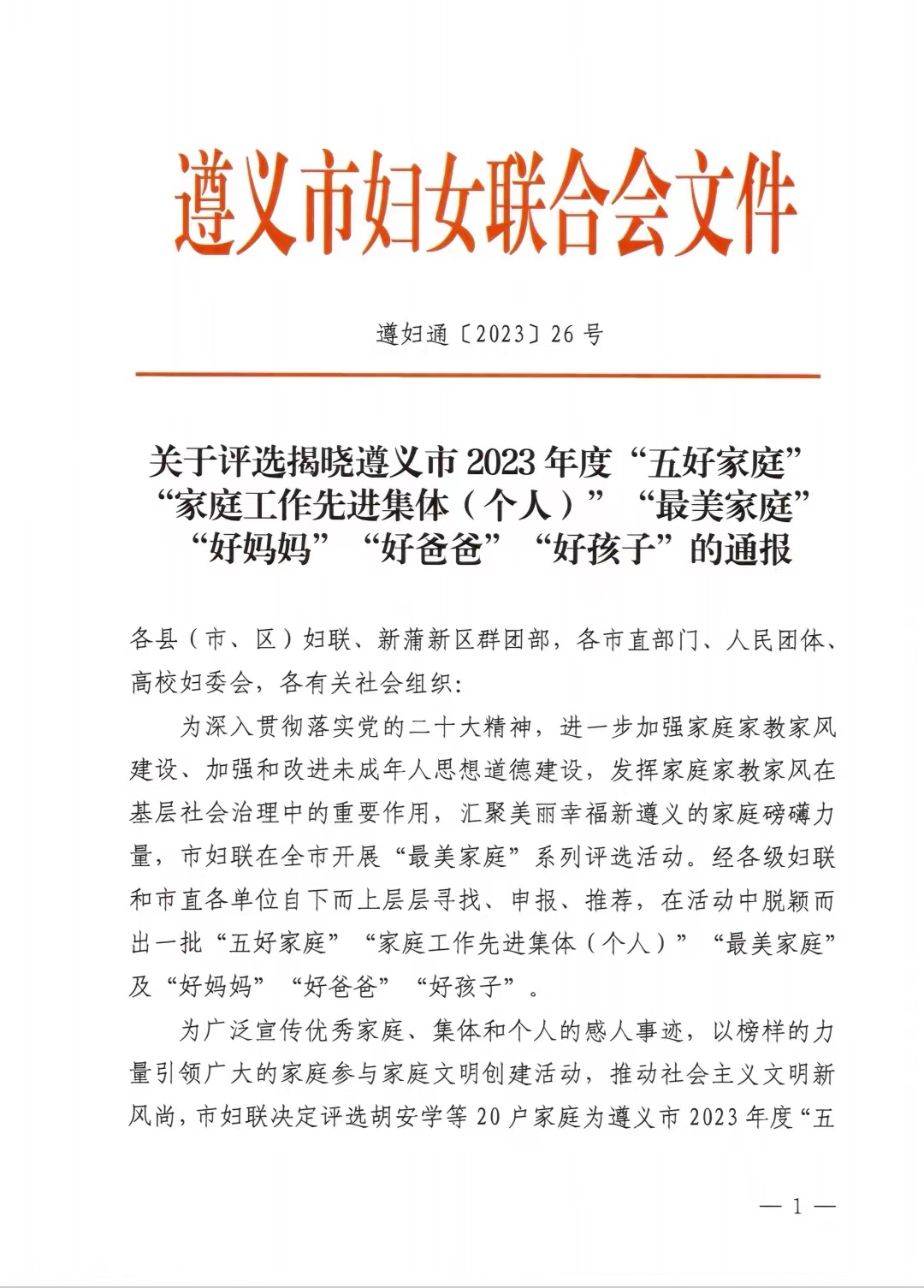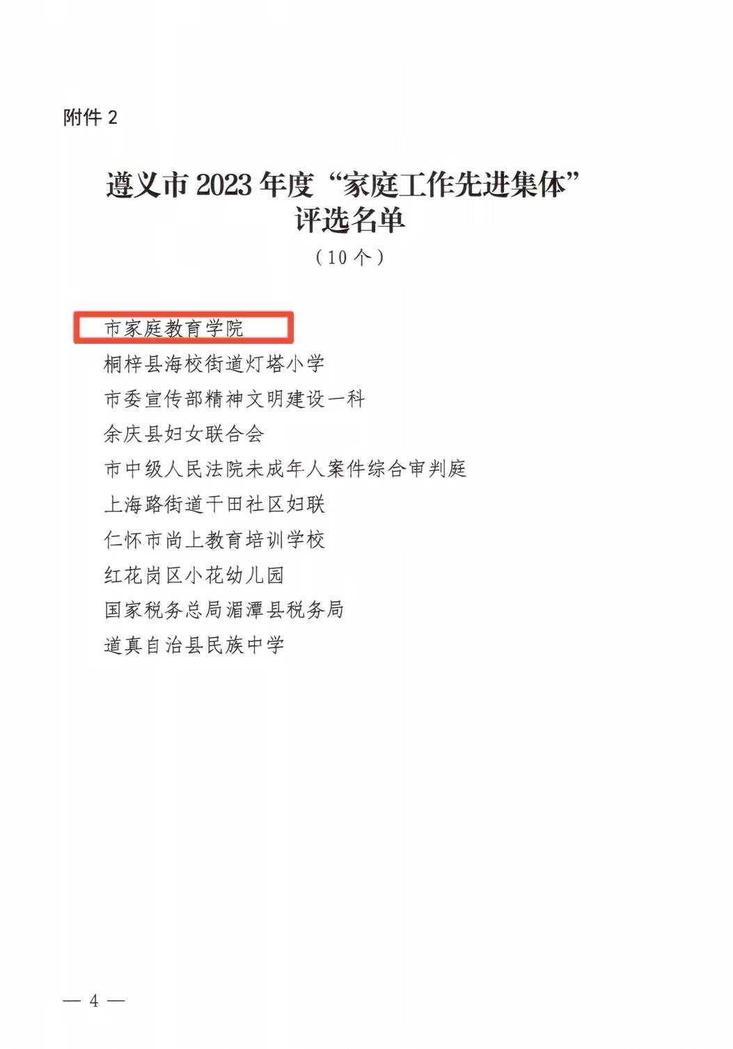 喜报!遵义市2023年度家庭工作先进集体、先进个人公布,beat365亚洲版官网这些单位和个人上榜