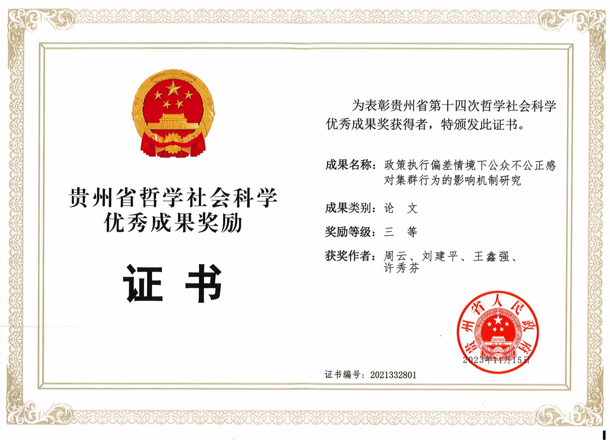 热烈祝贺!周云教授获贵州省第十四次哲学社会科学优秀成果奖!