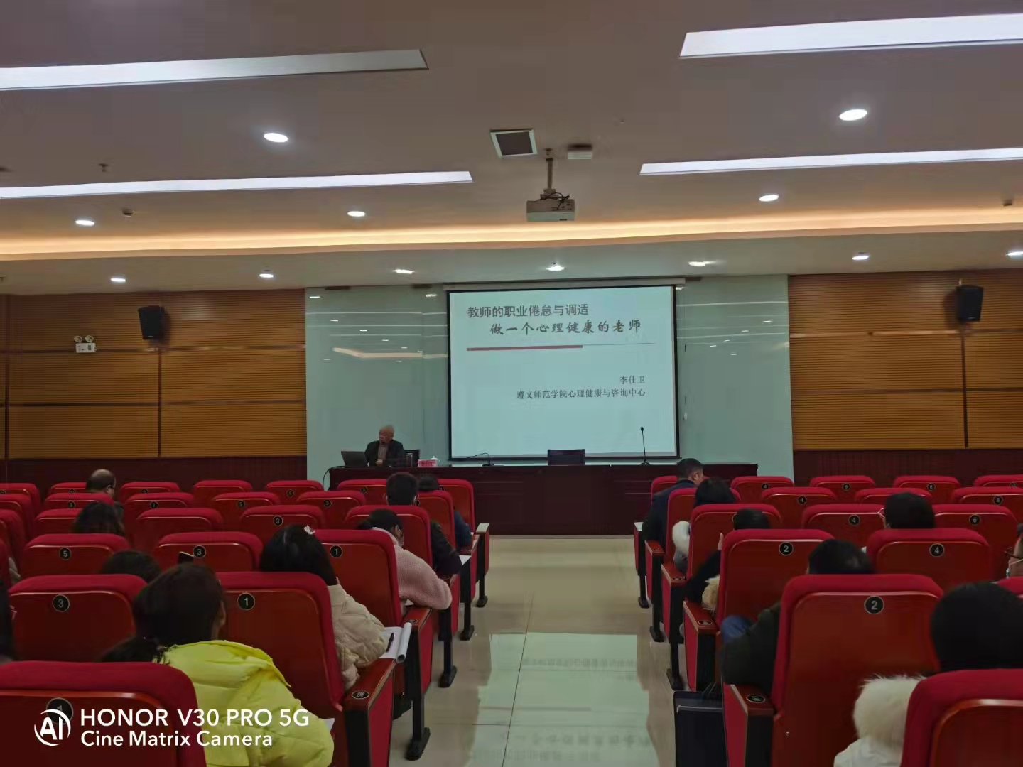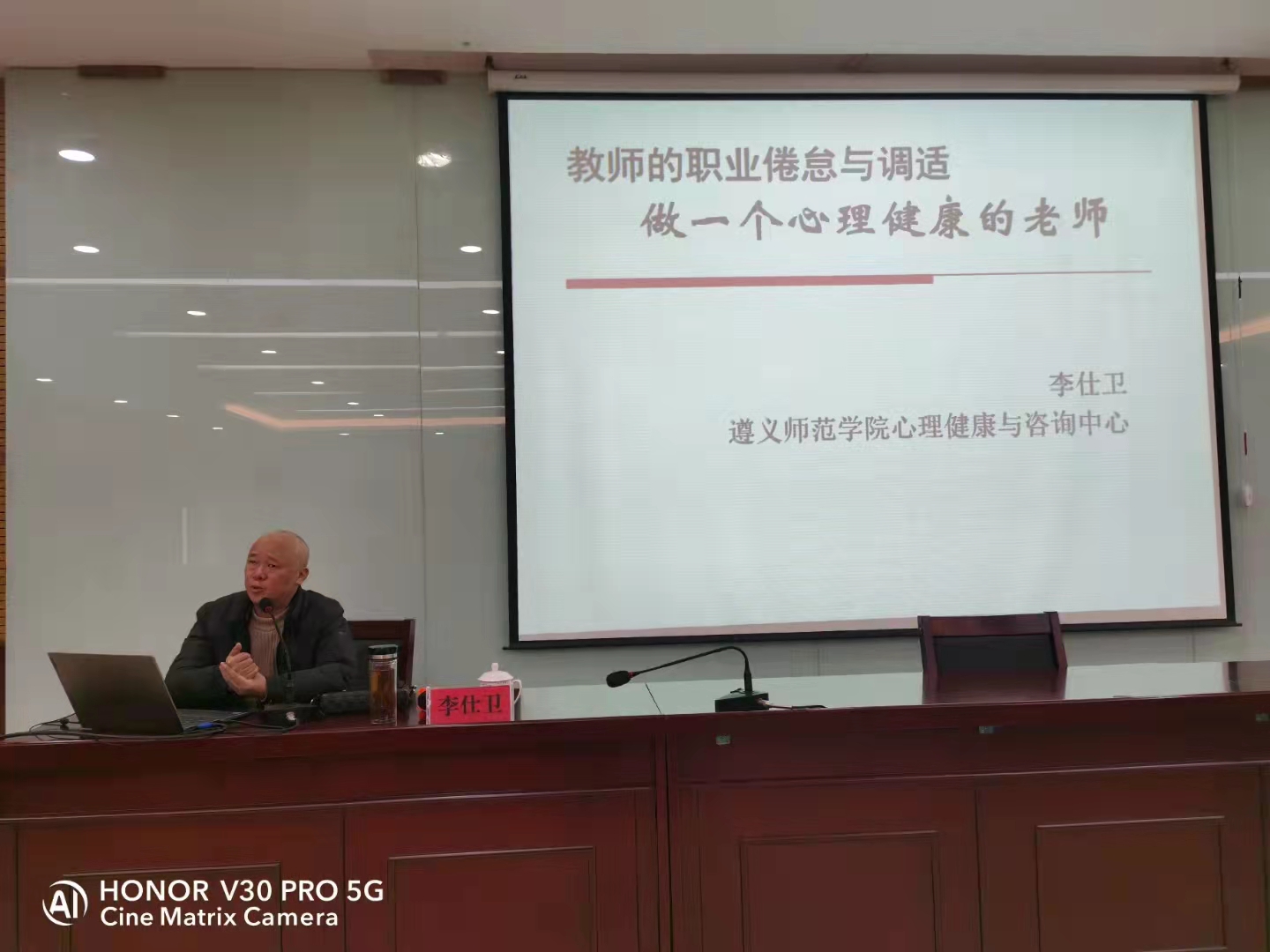 2021年11月25日和12月1日,beat365亚洲版官网心理健康与咨询中心、遵义市家庭教育指导中心、遵义市未成年人心理辅导中心李仕卫老师应邀两次分别为遵义市乡村全科教师第三期和第四期培训班作题为《教师职业倦怠与自我调适》主题讲座。