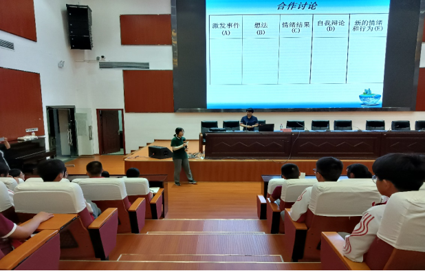 厌学、考试焦虑,人际交往问题——师生、亲子、同辈(异性),自我意识问题——压力、自卑、认同,情感行为问题——同性、早恋、青春期逆反等四大类。然后,宋老师围绕着“只有超人的推理,却不了解自己,是个迷惘的人;只有优异的成绩,却不懂得与人交往,是个寂寞的人;只有过人的智商,却不懂得管理情绪,是个危险的人”,与同学们探讨了如何了解自己、如何与人交往及如何管理情绪三个问题,并根据同学们的意愿将探讨的重点放在如何管理情绪这个问题上。