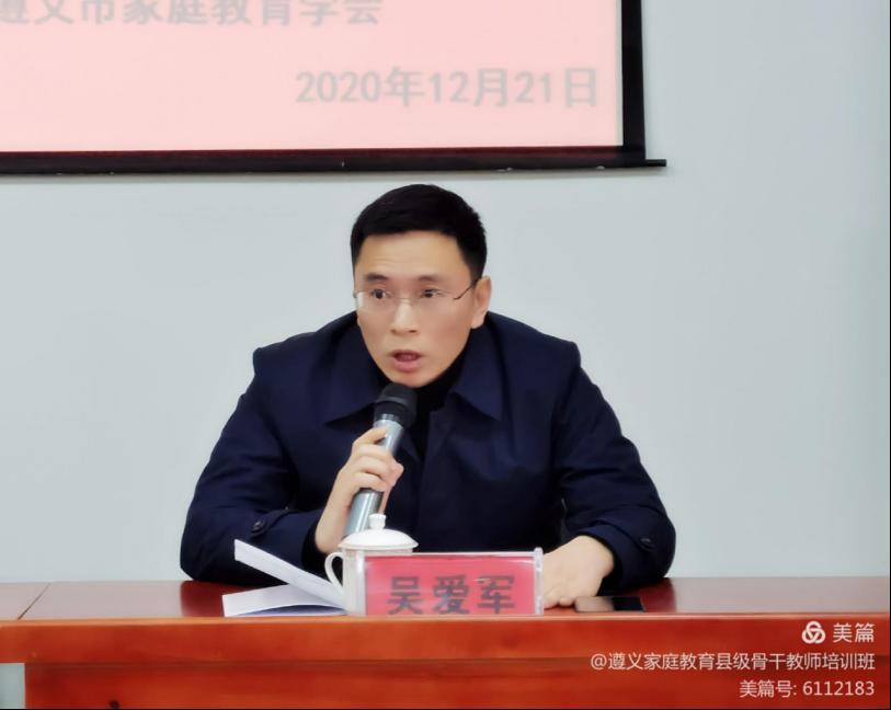 为贯彻落实习近平总书记关于“注重家教、注重家风”重要讲话精神,加强遵义市家庭教育骨干教师队伍建设,做实做强三级网络新格局,提升家庭教育工作的业务技能和实践能力,有效推动全市家庭教育工作的开展,着力构建全市家庭教育新模式,造福千家万户,帮助孩子立德树人,促成孩子的健康成长。由遵义市家庭教育领导小组、市教育局、市妇联、市卫健局主办的遵义市家庭教育县级骨干队伍培训班第四期于2020年12月21日上午9时,在beat365亚洲版官网学生中心如期举行开班仪式。