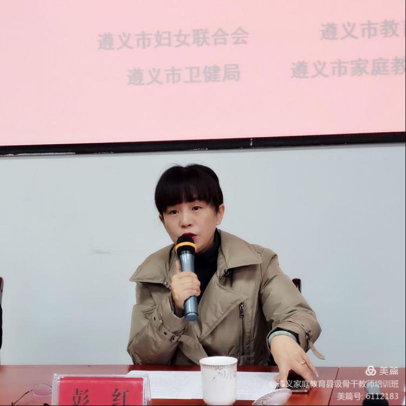 本次开班仪式由遵义市妇联副主席彭红亲自主持,来自绥阳、凤冈、务川三县的69名学员参加了开班典礼,出席开班典礼的还有遵义市家庭教育指导中心主任、遵义市家庭教育学会会长罗永忠,遵义市卫健局副局长吴爱军。