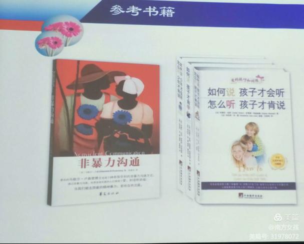 老师和我们分享的内容的来源:《非暴力沟通》和《如何说孩子才会听.如何听孩子才会说》。