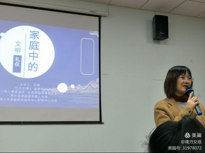 今天上午给我们授课的老师张萌博士(副教授),张老师给我们分享的主题是“家庭成员间的礼仪规范”。