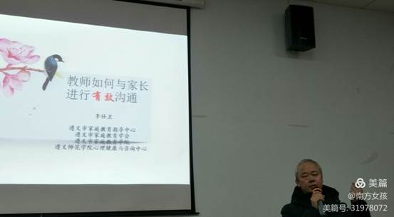 下午给我们讲课的是李仕卫(教授),李老师和我们分享的主题是“教师如何与家长进行有效的沟通”。