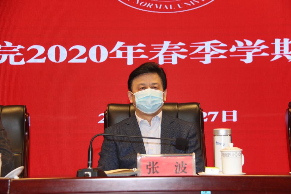 张波以“坚定信心打赢战役持续发力内涵建设奋力开创高质量发展的美好新篇章”为题作了讲话,指出要始终不忘办好人民满意大学初心,牢记“传承红色基因,讲好遵义故事”嘱托,坚持以习近平新时代中国特色社会主义思想为指导,以箭在弦上的紧迫感、不负韶华的责任感、落后则败的危机感、势在必得的使命感,在遵师阵地上打好新冠肺炎疫情防控战、“申硕申大”攻坚战、高质量发展持久战的“三大战役”。