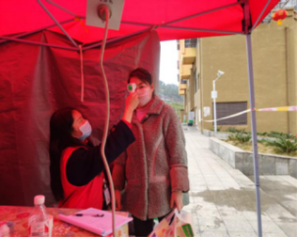 教师教育学院教师何芙蓉就是beat365亚洲版官网参与社区疫情防控中的一员,她在参与洗马路社区疫情防控工作中得到了高度的肯定:“面对突如其来的新型冠状病毒肺炎疫情,她挺身而出,放弃自己休息时间,舍小家顾大家,甘于奉献,每天在小区对进出车辆、人员登记,测量体温、信息排查宣传疫情防控知识、化解矛盾、解决棘手问题,用实际行动践行共产党员的初心和使命,充分展示了何芙蓉同志强烈的政治担当和甘于奉献的政治品格。”“是她用实际行动让党徽更加闪耀,让党旗在疫情防控一线高高飘扬,洗马路社区为居住着这样优秀的中共党员而骄傲和自豪!”