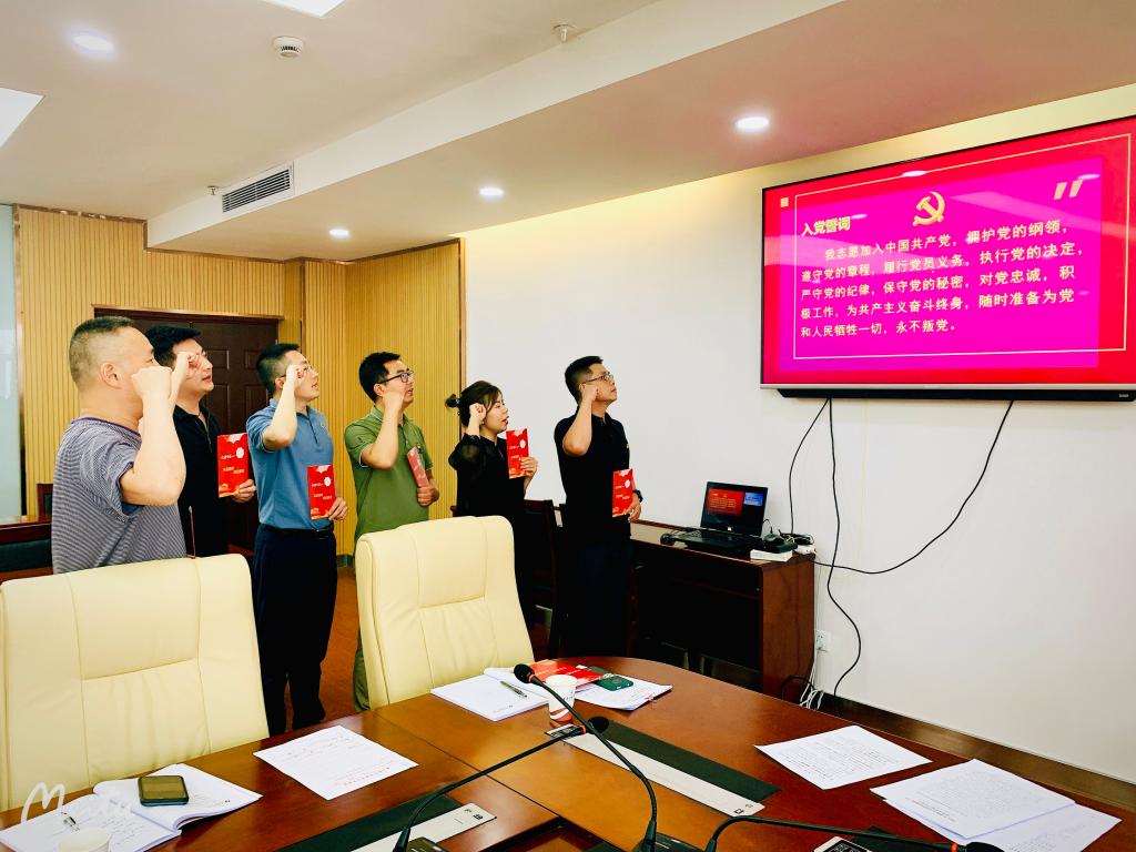 党支部给预备期为1-7月的党员同志集体过“政治生日”,金星为过“政治生日”的党员同志分别赠送“生日” 贺卡,并带领重温入党誓词。