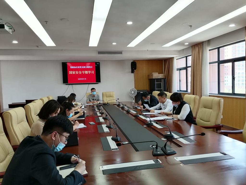 2022年4月11日下午,党政办公室党支部在行政楼516会议室开展了4月主题党日活动,活动主题为国家安全教育。本次主题党日活动由党支部书记、党政办主任付强主持,党政办公室党支部全体党员同志参加了本次学习活动。
