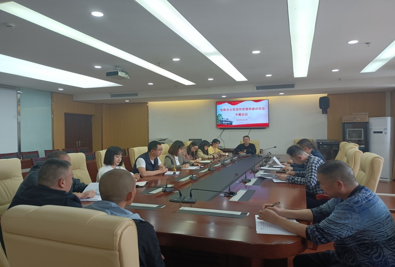2023年4月13日16:30,党政办公室党支部在行政楼516会议室召开会议,专题研究宣传思想和意识形态工作。会议由党支部书记、党政办主任付强主持。