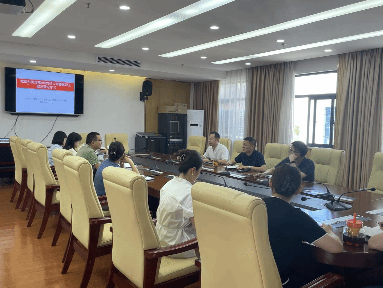 党政办公室党支部于2023年8月23日下午15:00在行政楼516会议室召开党政办公室党支部2023年8月党员大会暨教职工政治理论学习会。会议由党支部书记、党政办主任付强主持。全体党员参加会议。