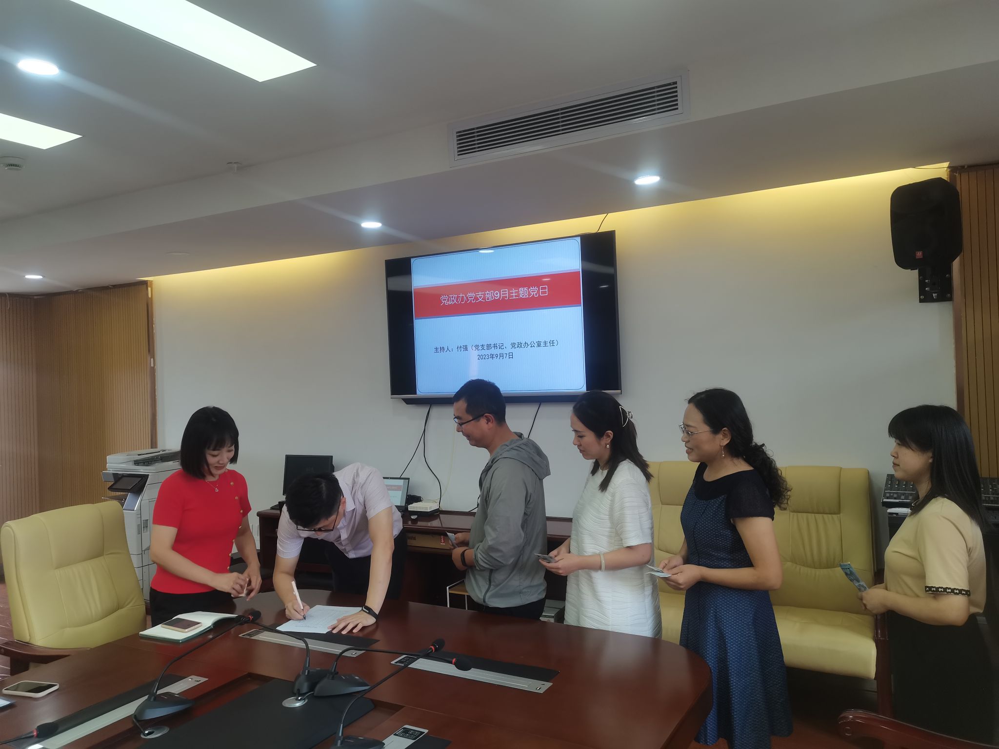 2023年9月7日,党政办公室党支部在行政楼516会议室开展了9月“集中交纳党费”的主题党日活动,旨在进一步增强党员意识,提升党性修养,自觉履行党员责任与义务。活动由党政办党支部书记、党政办主任付强同志主持。