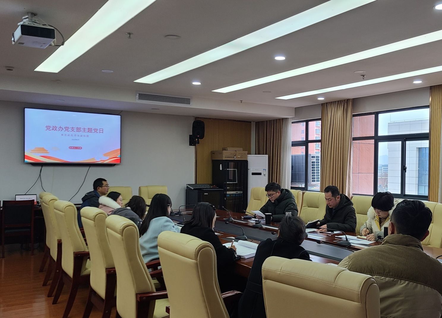 党政办公室党支部于2024年2月28日下午16时在行政楼516会议室开展“党的建设”主题党日活动。党政办公室党支部全体党员参加会议。