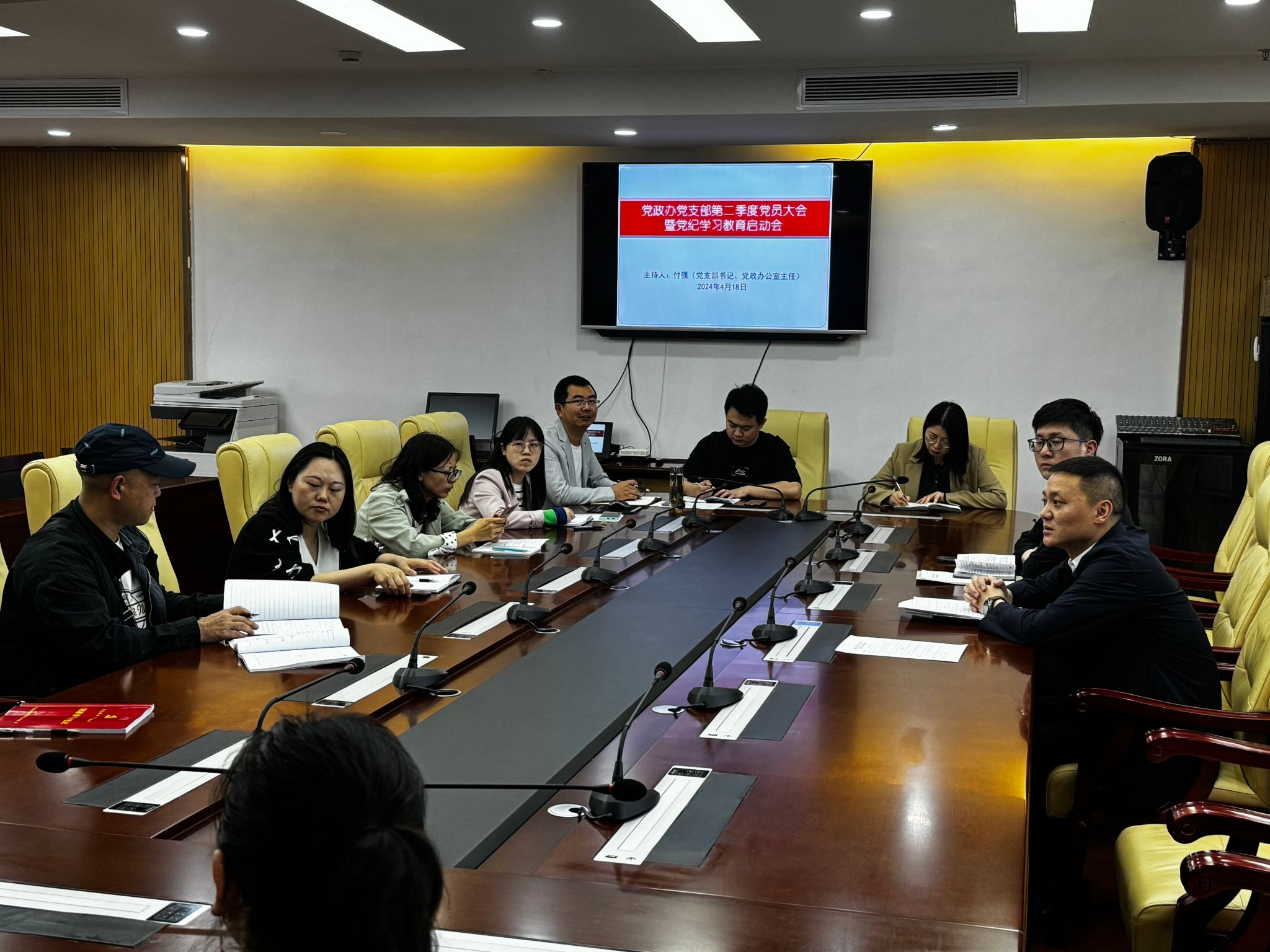 4月18日下午,党政办党支部在行政楼516会议室召开第二季度党员大会暨党纪学习教育启动会,传达学习习近平总书记近期重要讲话精神,学习贯彻习近平总书记关于党纪学习教育的重要讲话和重要指示精神,研究安排党支部党纪学习教育工作。