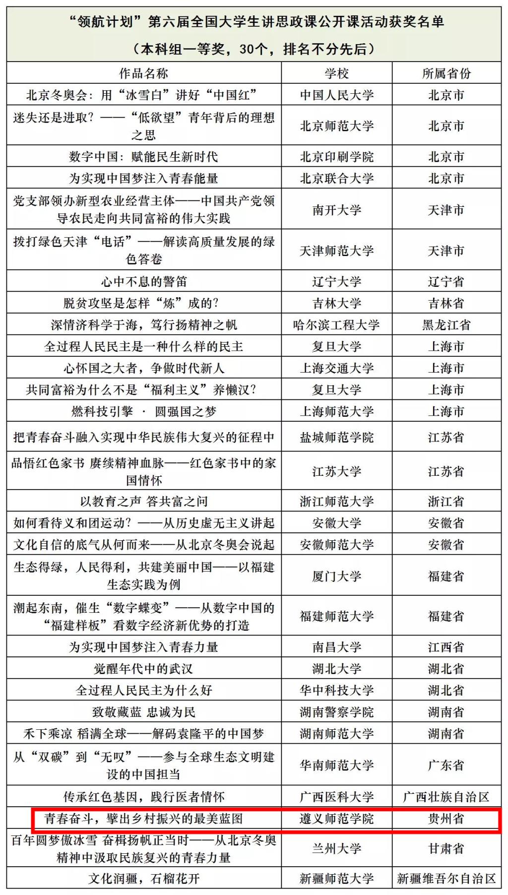 3月30日,由教育部高校思政课教学指导委员会主办的第六届“青春献礼二十大·强国有我新征程”全国高校大学生讲思政课公开课展示活动结果公布,beat365亚洲版官网获一等奖1项、优秀奖1项,是唯一获得一等奖的本省高校。