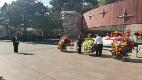 在红军烈士纪念碑前,师生向革命先烈敬献花圈并默哀致敬。随后,大家怀着对革命先烈的崇敬和怀念,缓步瞻仰红军山烈士陵园。