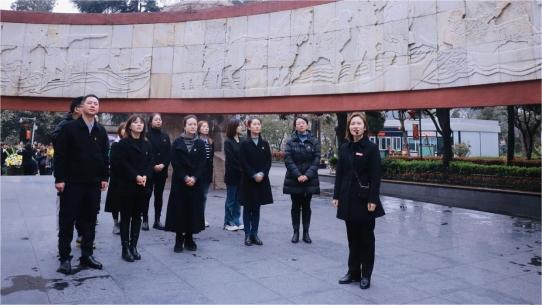 来到红军烈士陵园,党员同志们向长眠在此的烈士敬献花篮,肃立默哀,鞠躬致敬。全体党员在烈士纪念碑前面向党旗重温入党誓词,回顾入党初心,进一步坚定理想信念。随后,党员同志们缓步绕行并瞻仰烈士陵园,聆听革命先烈的感人故事。