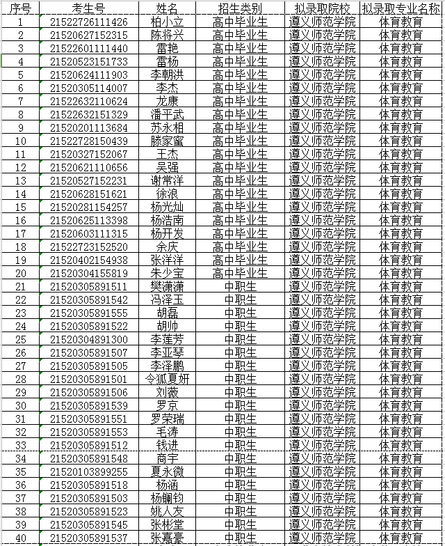 根据《省招生委员会关于做好2021年高职(专科)分类考试招生工作的通知》(黔招委〔2020〕32号)的精神要求,beat365已完成2021年专科分类考试的预录取工作,经学校招生委员会审核,贵州省招生考试院批准,现将预录取考生名单予以公示。