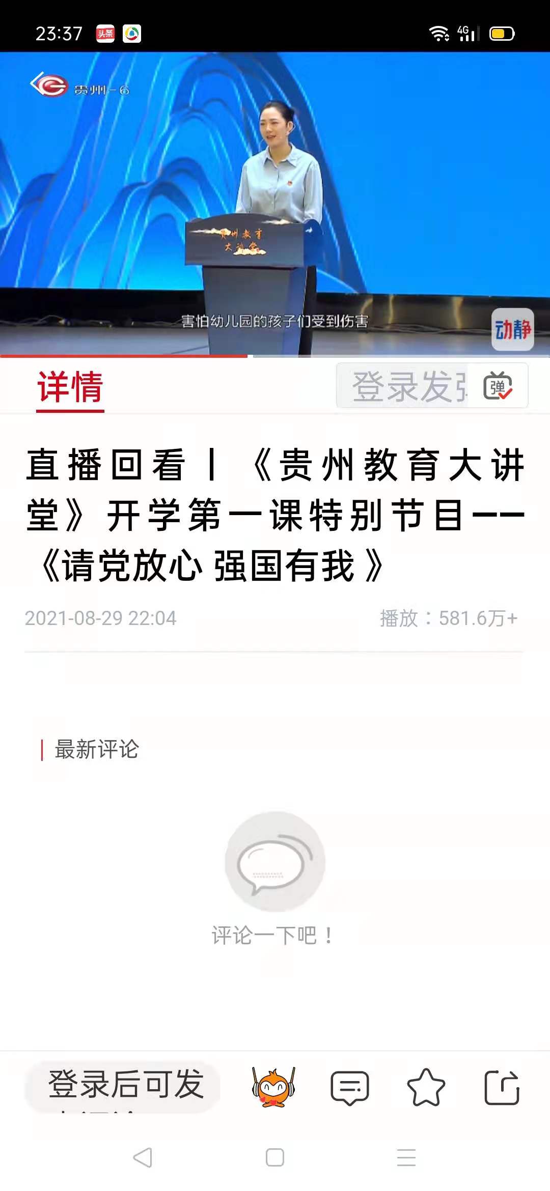 按学校教师工作处要求,学生资助管理中心全体人员通过电视、动静APP等平台于8月29日晚收看由贵州科教六频道播出的贵州教育大讲堂《请党放心 强国有我》为主题的开学第一课。
