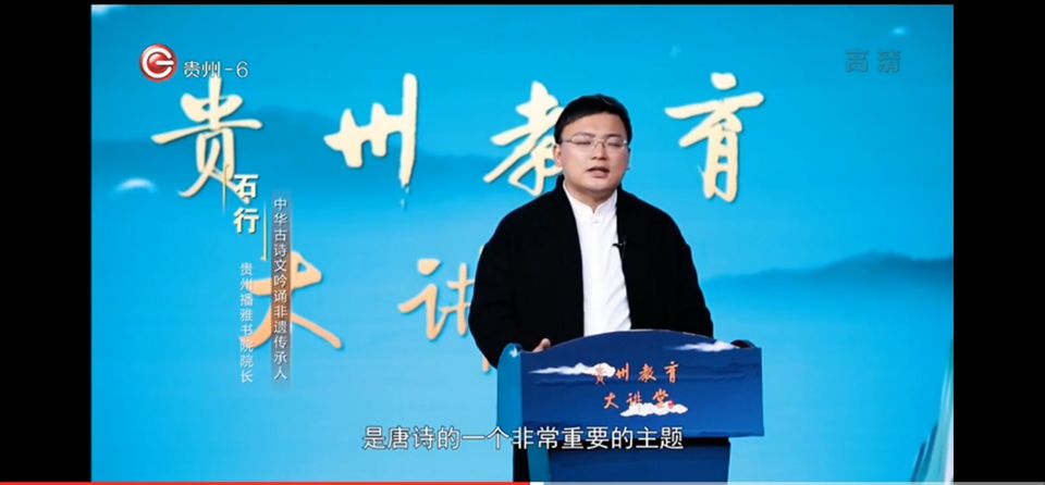 吟诵是我国优秀的非物质文化遗产,具有中国文化独特魅力。吟诵诗词,是中华文化的重要传承形态。石行院长用其家传数百年的传统吟诵曲调,讲述抑扬顿挫的音韵之美,传送飘动于贵州绿水青山间的曼妙音韵,带领我们大家一起感悟中华古诗文博大而温润的美。用吟诵的方式来叩开时空之门,通过音韵体会古诗词中的童真童趣、山川大地、家国情怀、人情事物以及贵州方言中蕴藏着的传统文化宝藏,体味中华古诗文不一样的魅力。