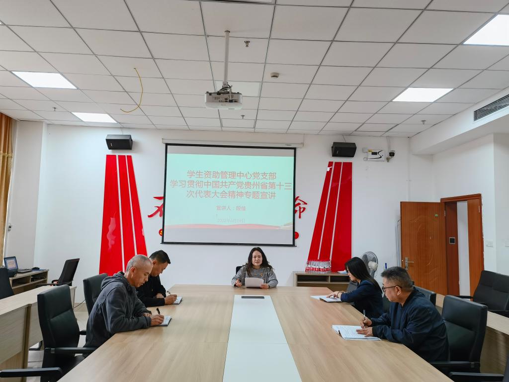 2022年5月19日上午,学生资助管理中心党支部在学生中心419会议室组织召开学习贯彻省第十三次党代会精神宣讲会,支部书记段佳同志作宣讲报告,全体党员参加,非党员杨静列席。